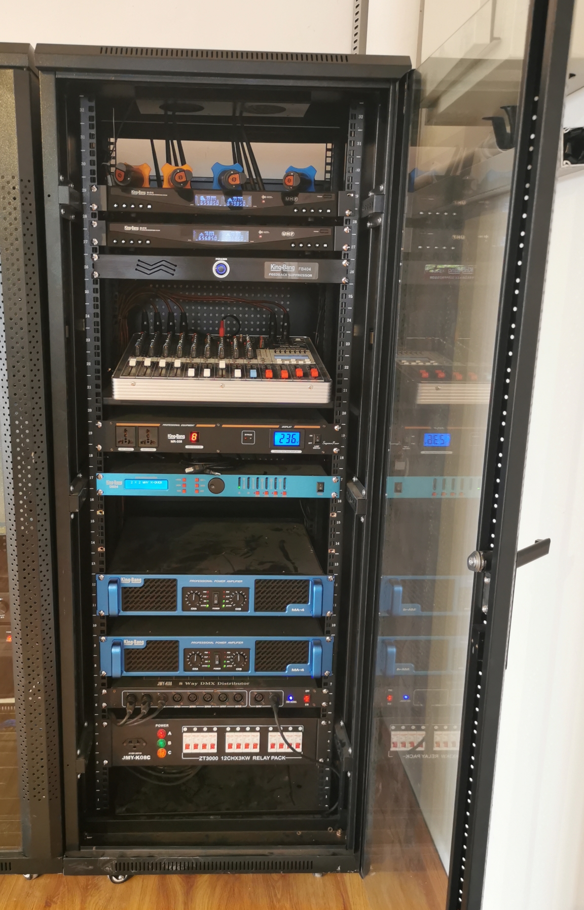 京邦電子(KING-BANG)京邦技術(shù)工程師通過對(duì)多媒體教室的布局環(huán)境分析,對(duì)音響設(shè)備進(jìn)行合理的布置與連接,并安裝的音響設(shè)備,可以使聲源和音響系統(tǒng)末端——音箱同處于一個(gè)聲場(chǎng)區(qū)域內(nèi),使觀眾能感受到聲源的真實(shí)存在,達(dá)到高保真重放的擴(kuò)聲要求。且達(dá)到多媒體教室音響以自然聲為主,要求擴(kuò)散性良好,聲場(chǎng)分布均勻,響度合適,自然度好等要求。